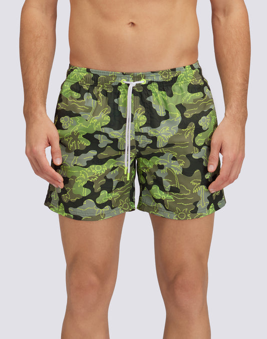RECYCLED POLY SHORT SWIMSHORTS WITH ELASTIC WAIST SUNCAP PRINT