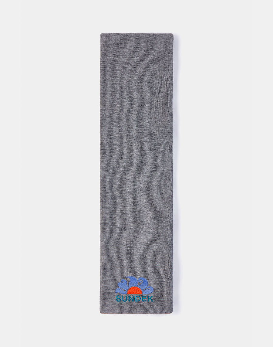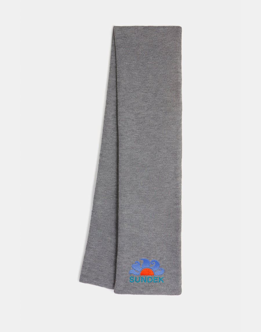 Knitted scarf with embroidered logo.