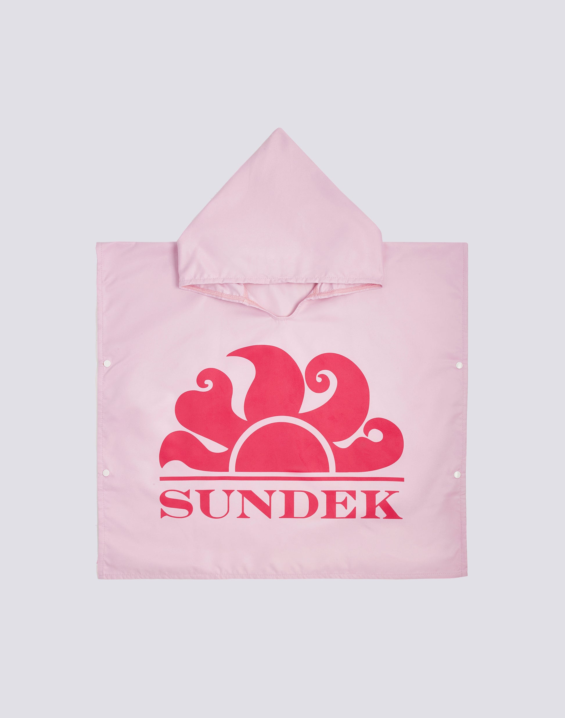 An essential accessory, also suitable as a gift idea. It is the microfiber poncho for children, with front Sundek print and hood. In light fabric obtained from recycling. Available for boy and girl and 2 color variants.