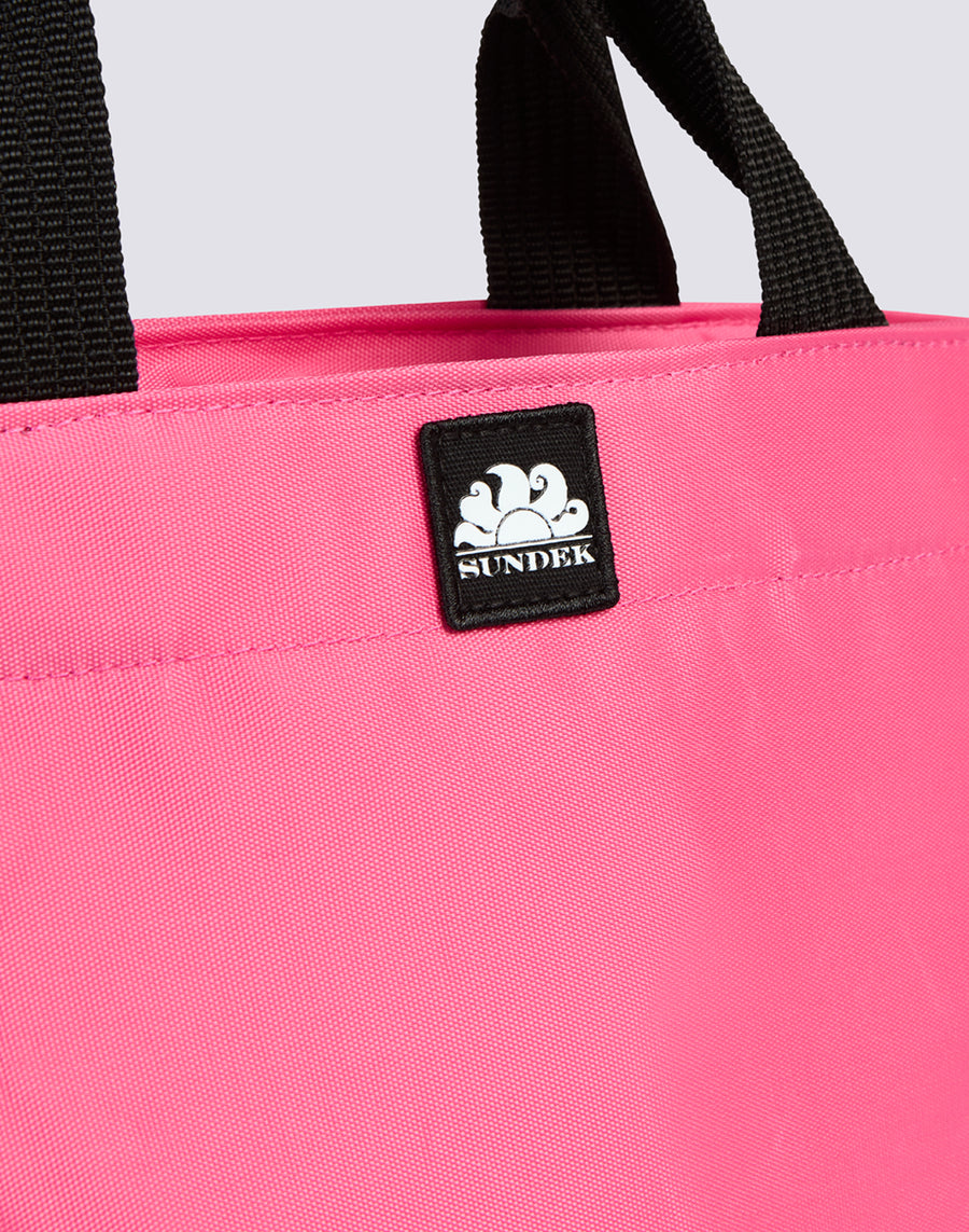 Mini shopping bag characterized by double handle, central closure with zip and internal pocket, also resealable with zip. Small, practical and functional to always have all the essentials with you.
