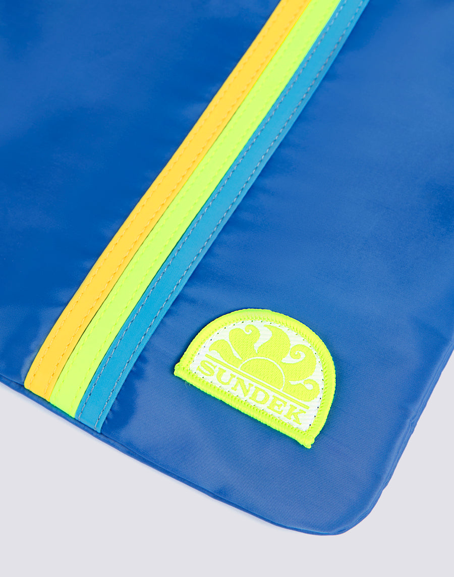 Lightweight, lined beach clutch bag with iconic tricolour ribbon detail to hold and protect the essentials you prefer to keep close at hand. Perfect to carry in your handbag or on its own thanks to the practical loop loop.