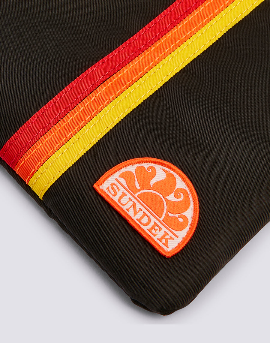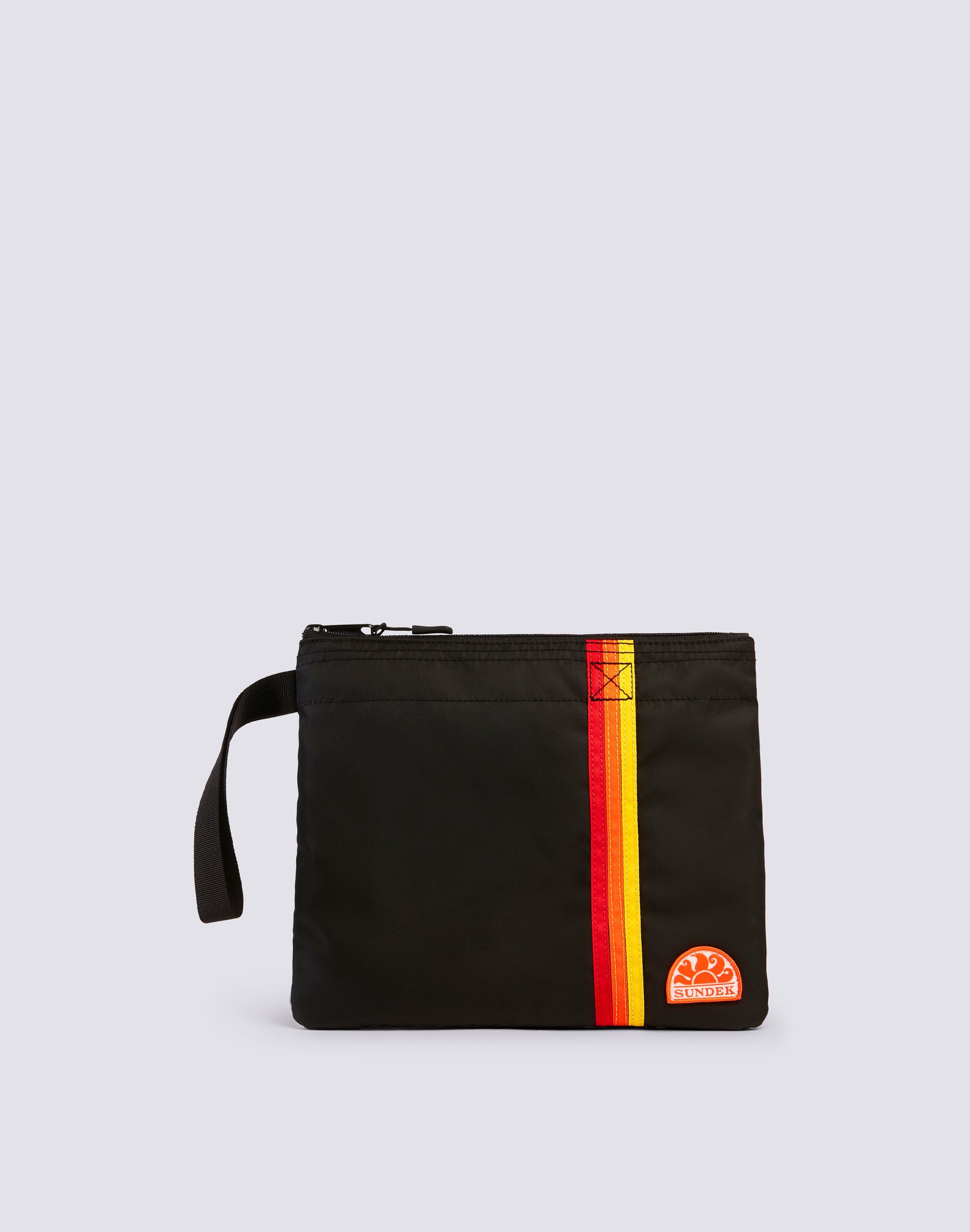 Lightweight lined beach clutch bag finished with the iconic tricolour ribbons, perfect for holding and protecting all the essentials you prefer to keep close at hand. You can carry it inside another bag or on its own thanks to the practical wrist strap.