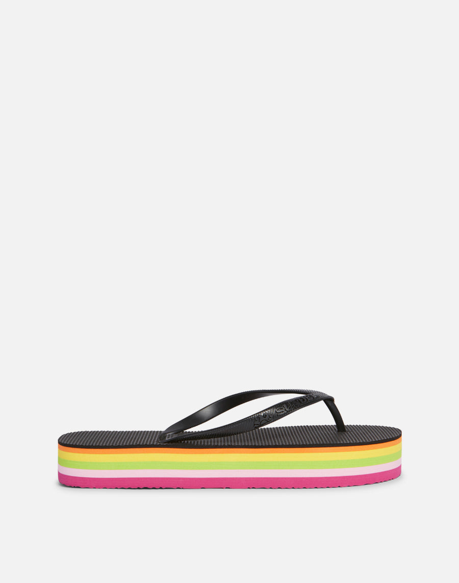 If you like shoes with a bit of height, choose these platform flip-flops for all your beach outings: contemporary, lightweight, comfortable, and finished with multicoloured details on the platform sole.