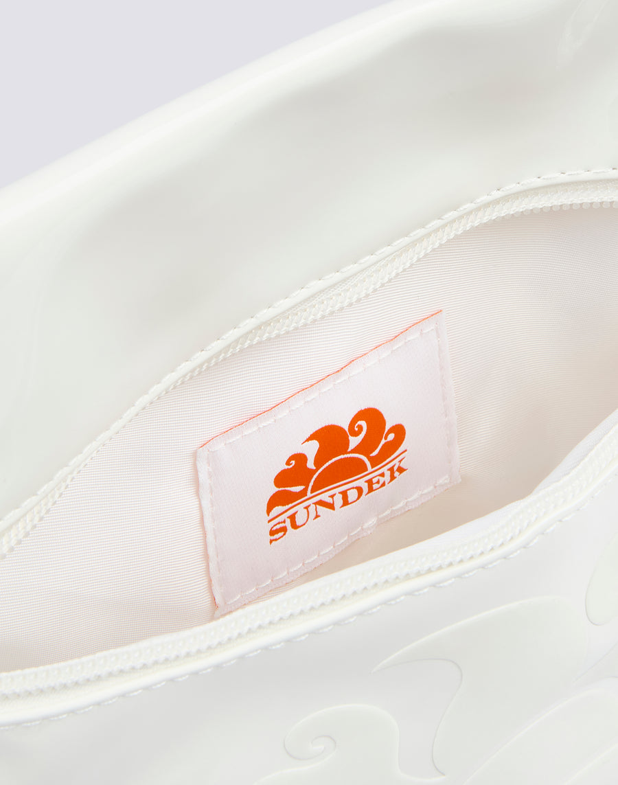 Waterproof beach clutch bag with snap hook and hand loop, to carry with you how and where you want. A versatile clutch bag that you can use on its own with the hand loop or attach to bags and backpacks thanks to the practical snap hook. The shiny effect and the front stitching give the clutch bag an indispensable touch of character. It is also waterproof, to protect your most important objects.