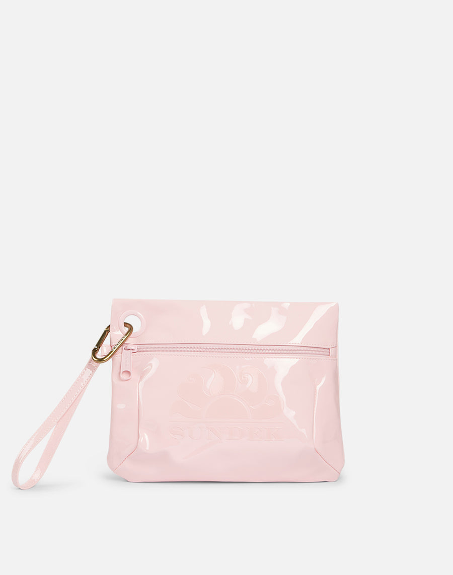 Waterproof beach clutch bag with snap hook and hand loop, to carry with you how and where you want. A versatile clutch bag that you can use on its own with the hand loop or attach to bags and backpacks thanks to the practical snap hook. The shiny effect and the front stitching give the clutch bag an indispensable touch of character. It is also waterproof, to protect your most important objects.