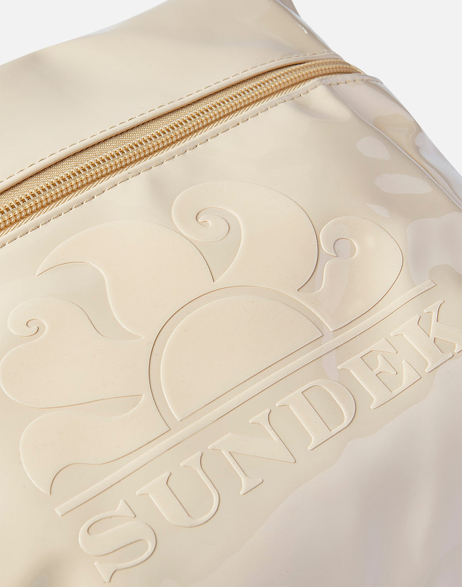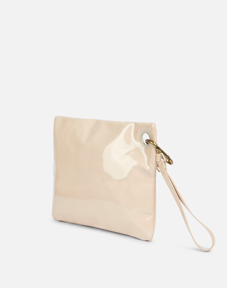 Waterproof beach clutch bag with snap hook and hand loop, to carry with you how and where you want. A versatile clutch bag that you can use on its own with the hand loop or attach to bags and backpacks thanks to the practical snap hook. The shiny effect and the front stitching give the clutch bag an indispensable touch of character. It is also waterproof, to protect your most important objects.