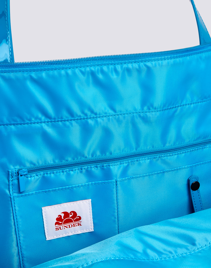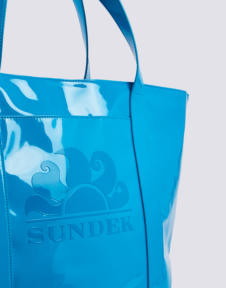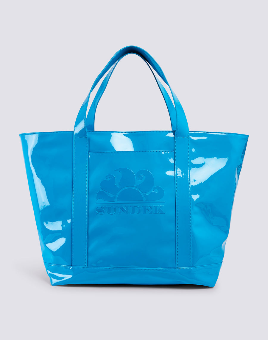If you are looking for a spacious and at the same time chic beach bag, opt for the new Tiffany, shiny finished, maxi, with handles. Perfect to accompany you to the sea, for a walk or an aperitif.
