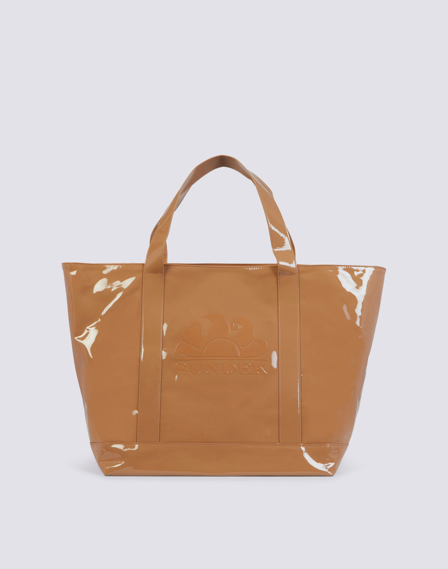 If you are looking for a spacious and at the same time chic beach bag, opt for the new Tiffany, shiny finished, maxi, with handles. Perfect to accompany you to the sea, for a walk or an aperitif.