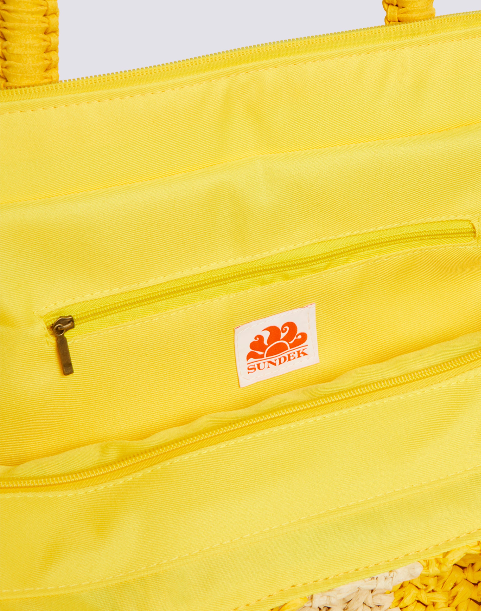Striped Paper Straw bag with handles, zip closure and embroidered Sundek logo. Ideal for the beach, to bring with you everything you need for a day at the beach.