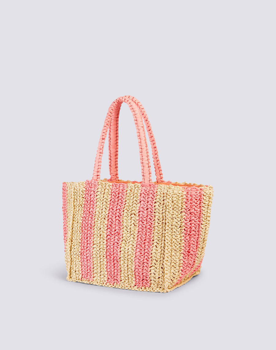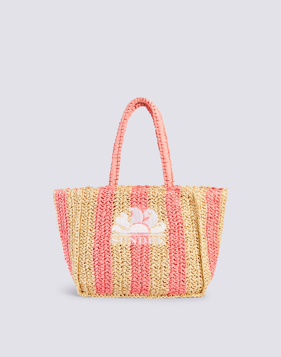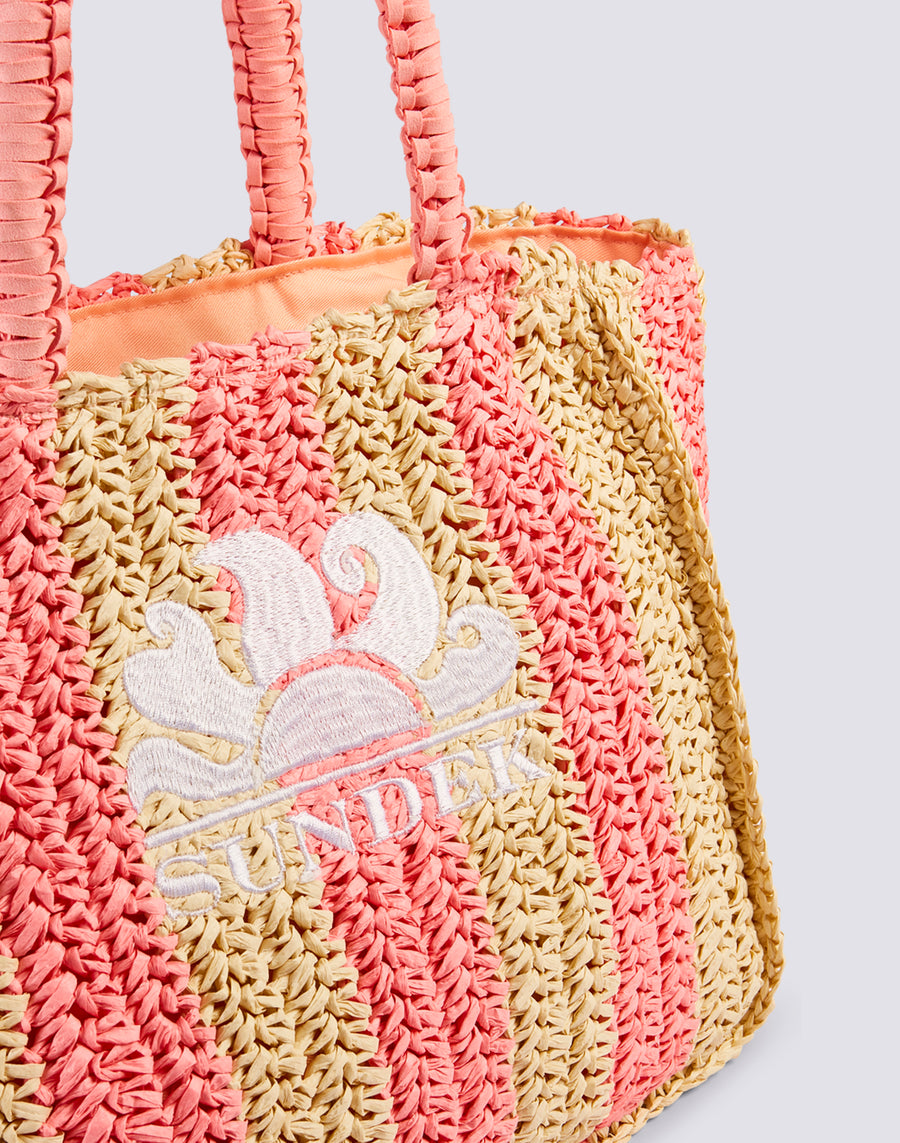 Elegant woven straw bag with embroidered logo and zip closure. Equipped with an internal mini pocket, it is perfect for the beach or for a walk in the centre, to always have everything you need with you.