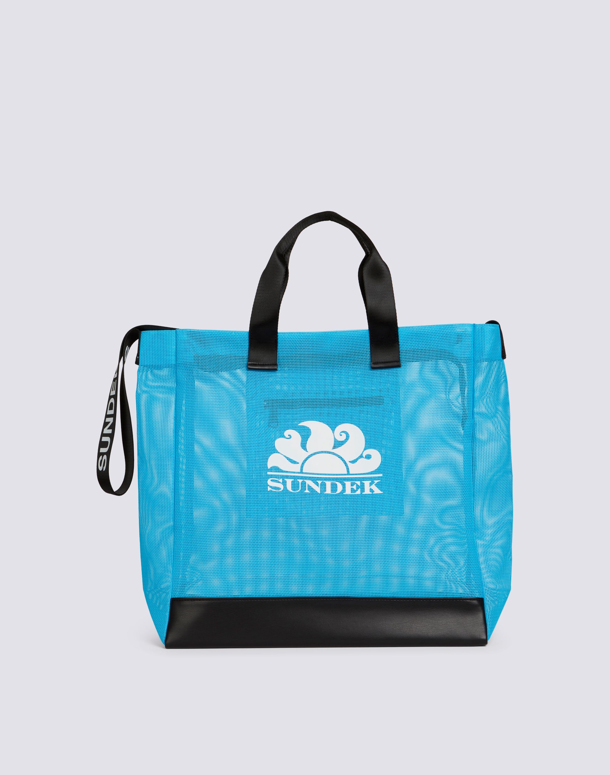 Mesh beach bag with large Sundek logo. Roomy and ideal for carrying everything you need for a day at the beach.