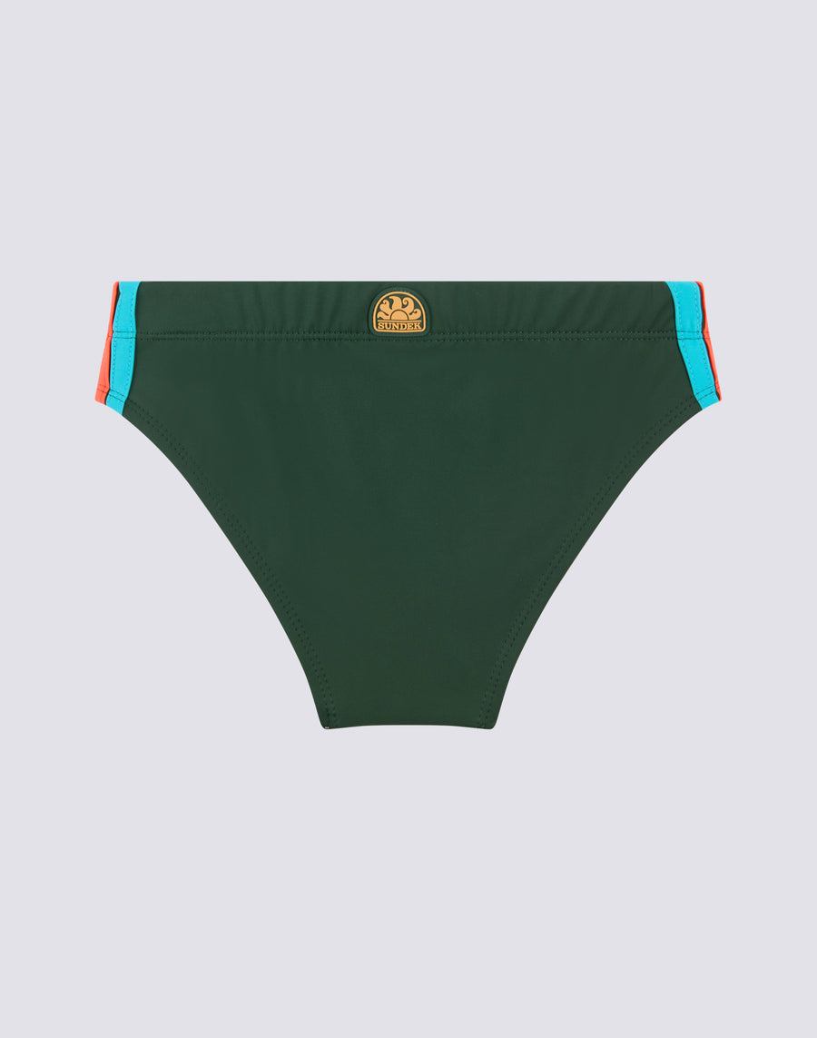 Immerse yourself in the colours of the rainbow. Child's swimming trunks in regenerated Econyl nylon.