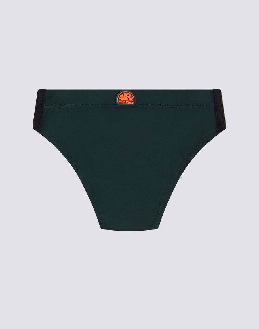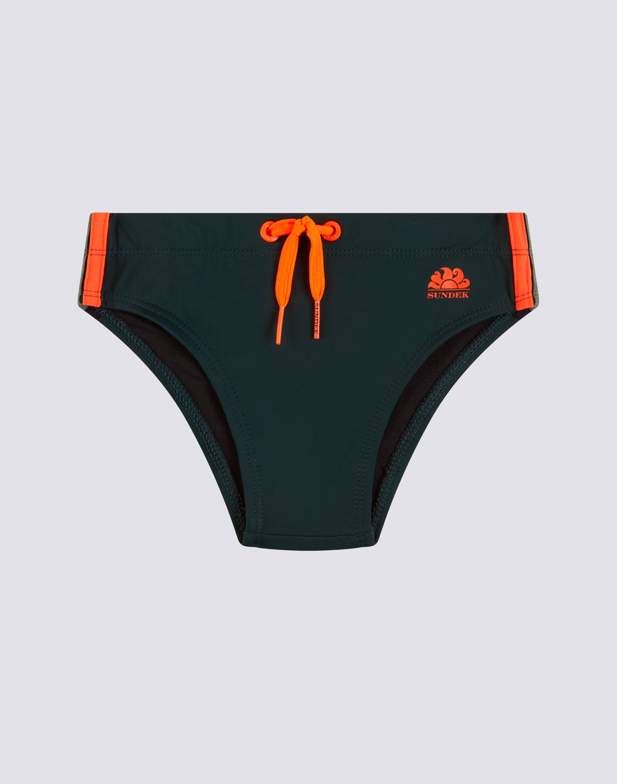 Immerse yourself in the colors of the rainbow. Children's swimsuit briefs in regenerated Econyl nylon.