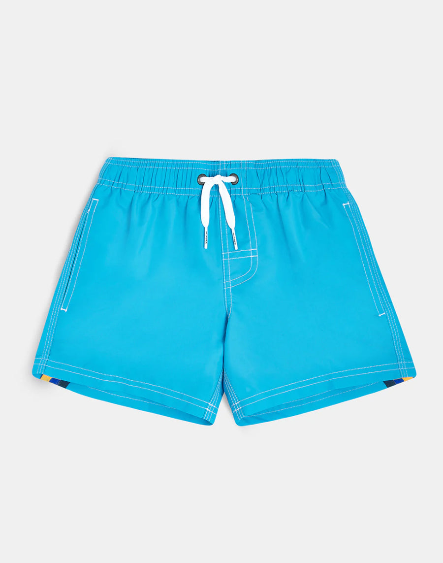 These boys' swim shorts feature intense colours and a super-comfortable, quick-drying fabric. A style that will accompany your little boy in all his holiday activities, perfect for moving around and playing in complete freedom. Made from our classic nylon taffeta fabric and constructed with three-needle stitching for durability. Pack them in your suitcase year after year.