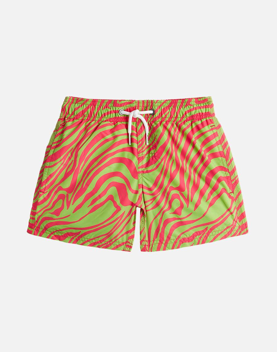 Bring the fun into the water with our kids zebra print swimsuit. Designed to create a family themed look, these swim shorts will be ideal for your children. The cheerful colors and fun prints will make swimming time even more beautiful!