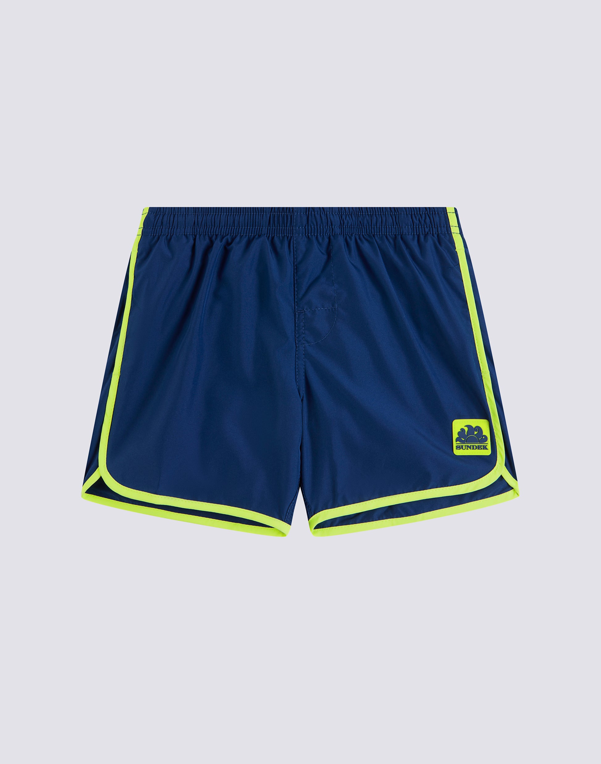 Short children's costume with elasticated waist, made of lightweight polyester. Equipped with rounded side vents. External length 10.25"/26 cm (in size 6 years).
