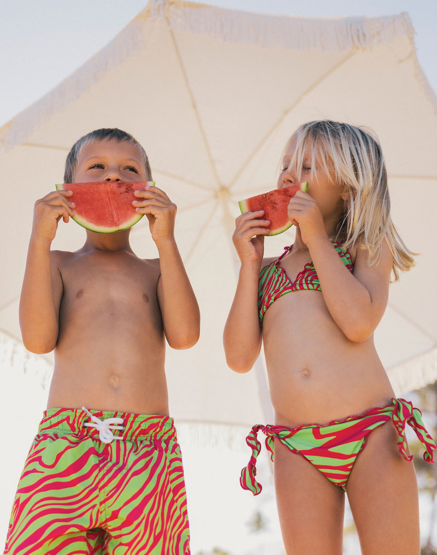 The girls' zebra-print bikini is a swimsuit coordinated with mum's, with a cute animal print, a perfect family project.🌸