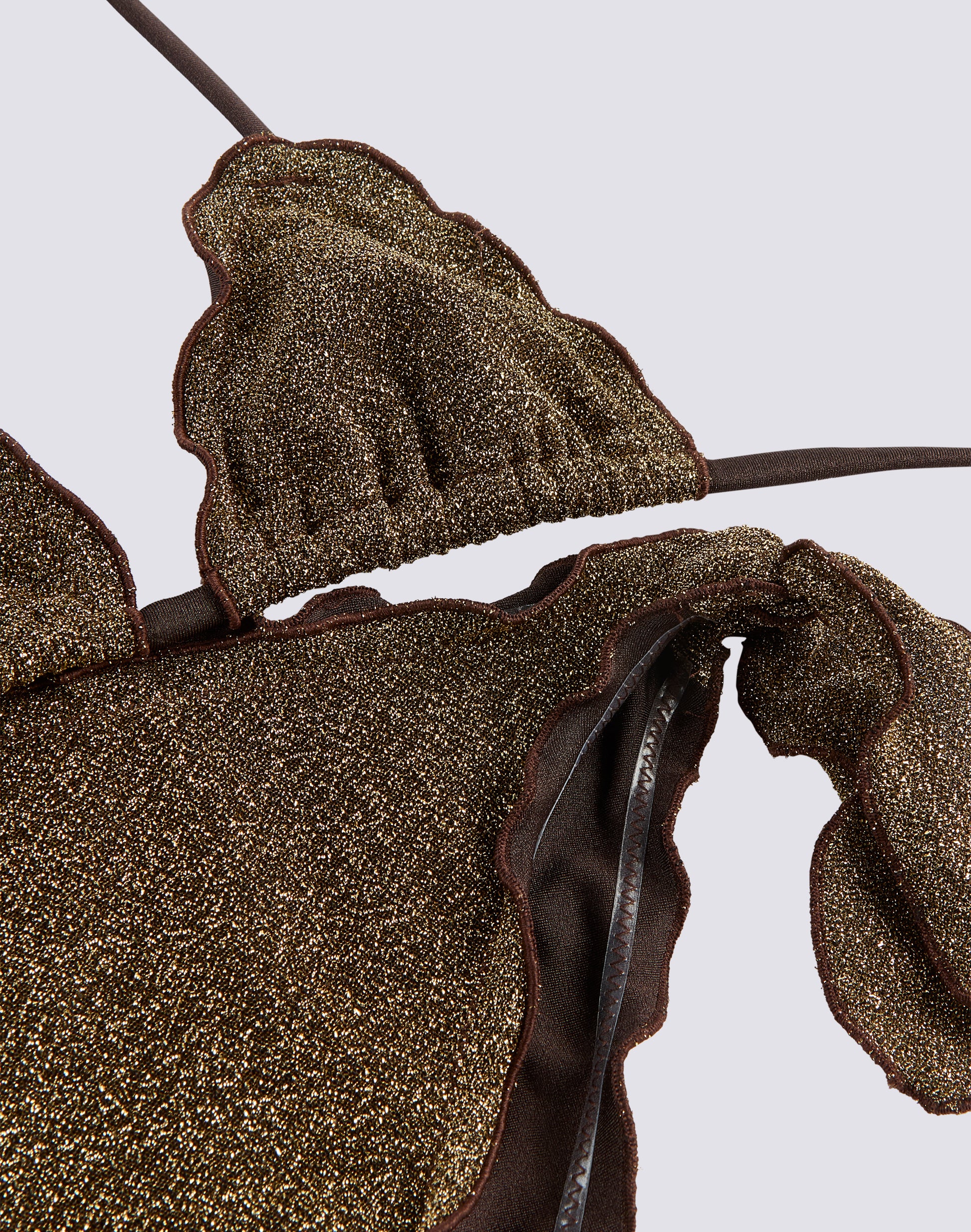 64% PA 36% EA Shiny lurex fabric, comfortable and with lining that guarantees a soft contact with the skin.