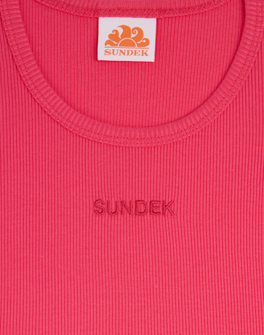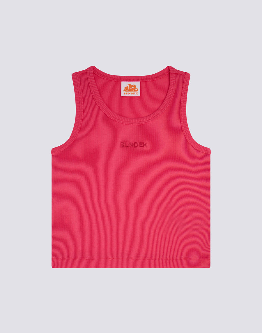 Girls' cropped tank top with SUNDEK logo embroidered on the front. Perfect for summer days, worn with shorts or a skirt.
