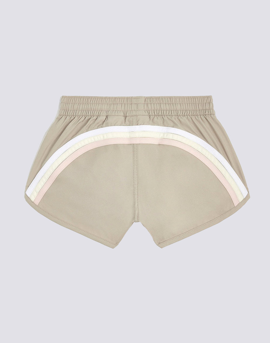 The mini version of the women's Margate swimsuit. Lightweight and comfortable, the shorts have a low elasticated waist with an adjustable drawstring. They can also be worn over a one-piece swimsuit or bikini bottoms.