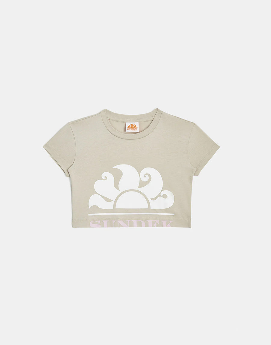 Cropped girl's T-shirt to wear over jeans or skirts. An essential model for your little girl's wardrobe