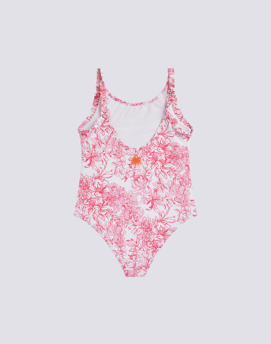 Romantic one-piece swimming costume for girls with Fleur de Joie print. Match the same model in the adult version for matchy matchy beach looks.