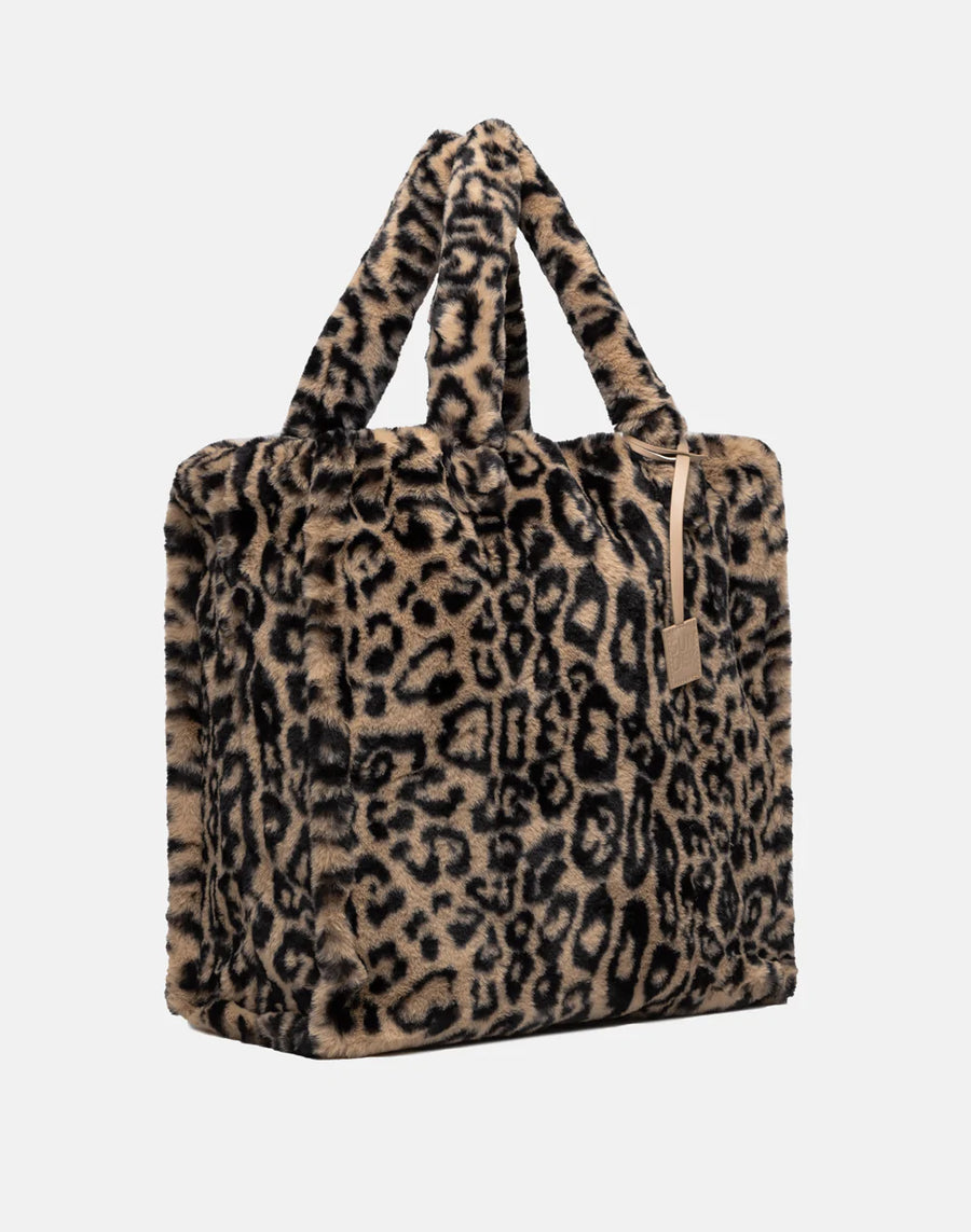 Large and spacious, this leopard print faux fur tote bag will become your must-have shopping bag this season.