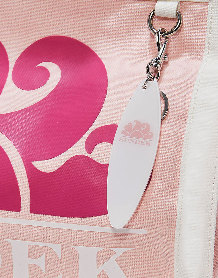 Medium canvas handbag with a printed Sundek logo. Iconic surfboard charm