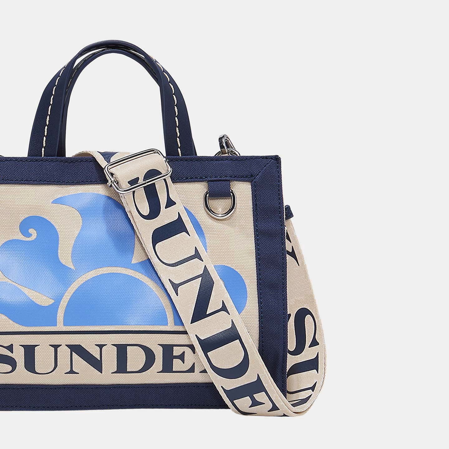 Small bag designed to carry by hand or across the body. Made from canvas with a printed logo and detachable crossbody strap. Iconic surfboard charm inspired by the history of Sundek