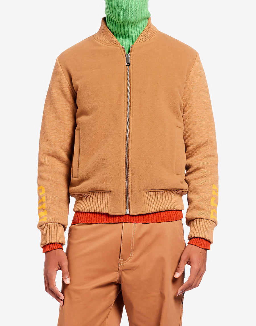 Set apart by its sleek and sporty design, this wool bomber jacket is finished with a zip and logos on the sleeves.
