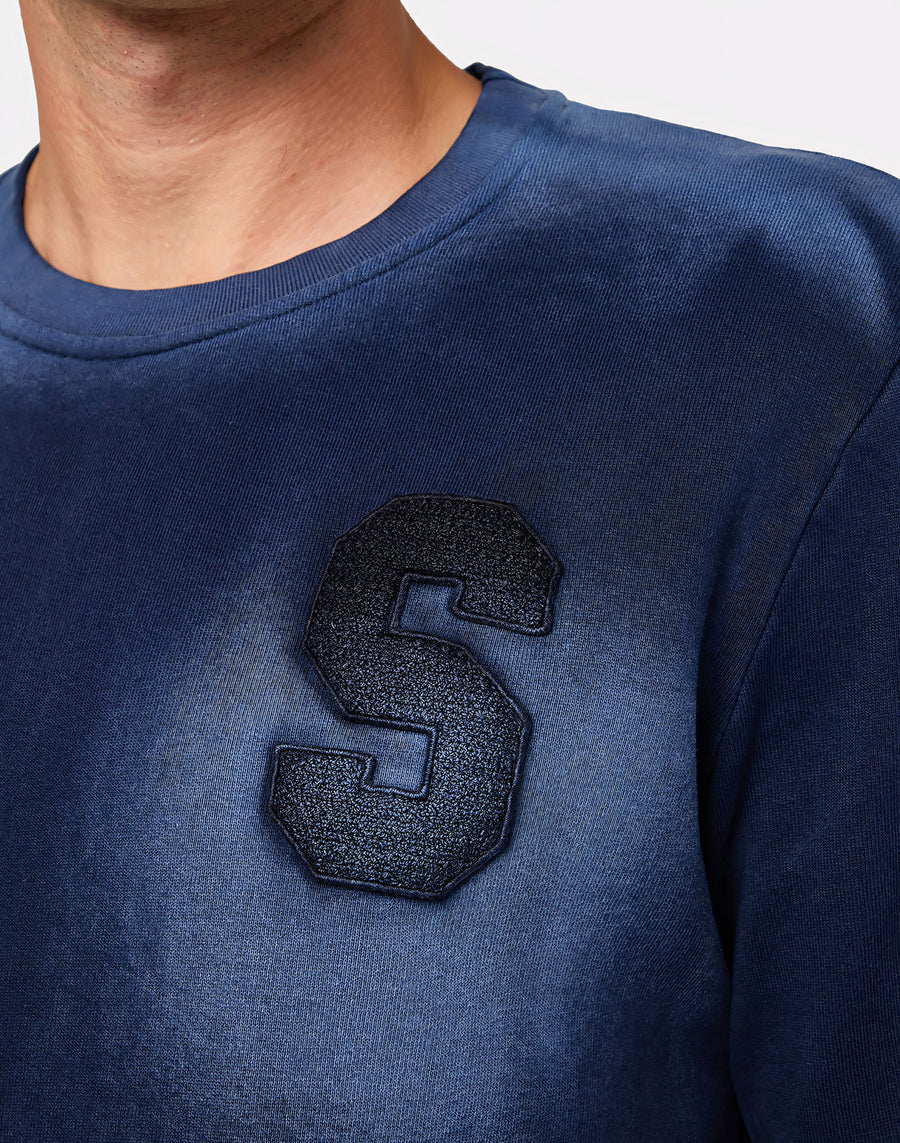 Embrace the vintage vibes in this loose and comfortable overdyed cotton sweatshirt, embellished with a terry S patch on the chest.