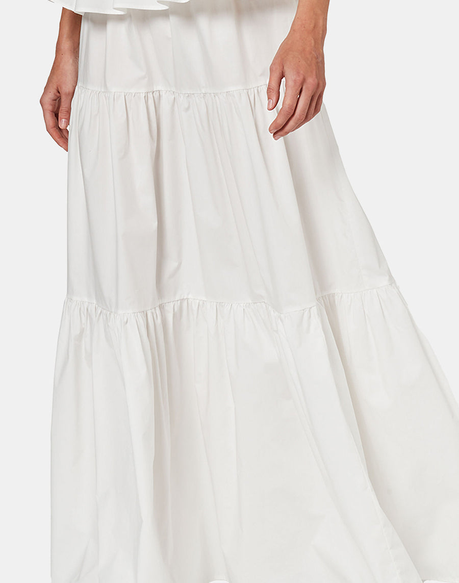 Made from cotton poplin, this long tiered skirt is set apart by its loose fit and feminine design. A versatile piece for a wide variety of looks.