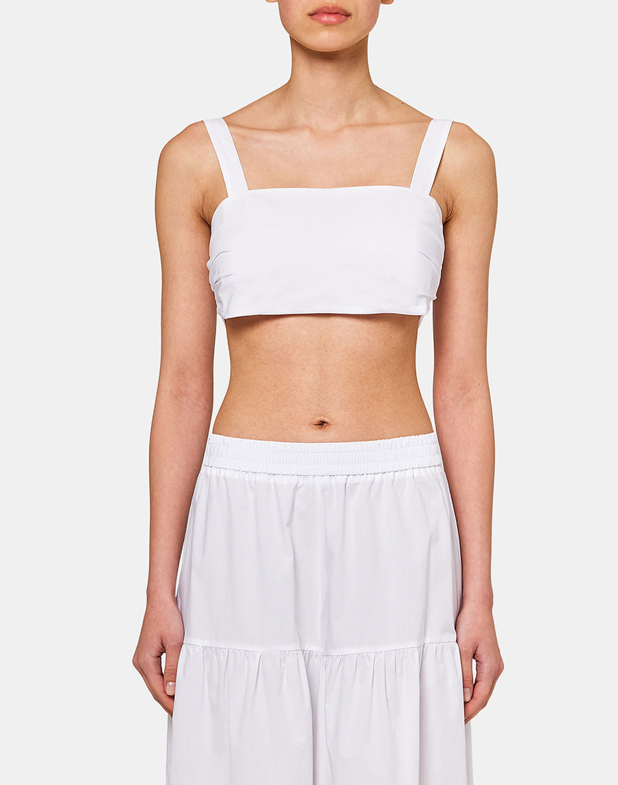 This plain cotton poplin bandeau top is set apart by its eye-catching bow. Pair it with the matching tiered trousers for a coordinated look.