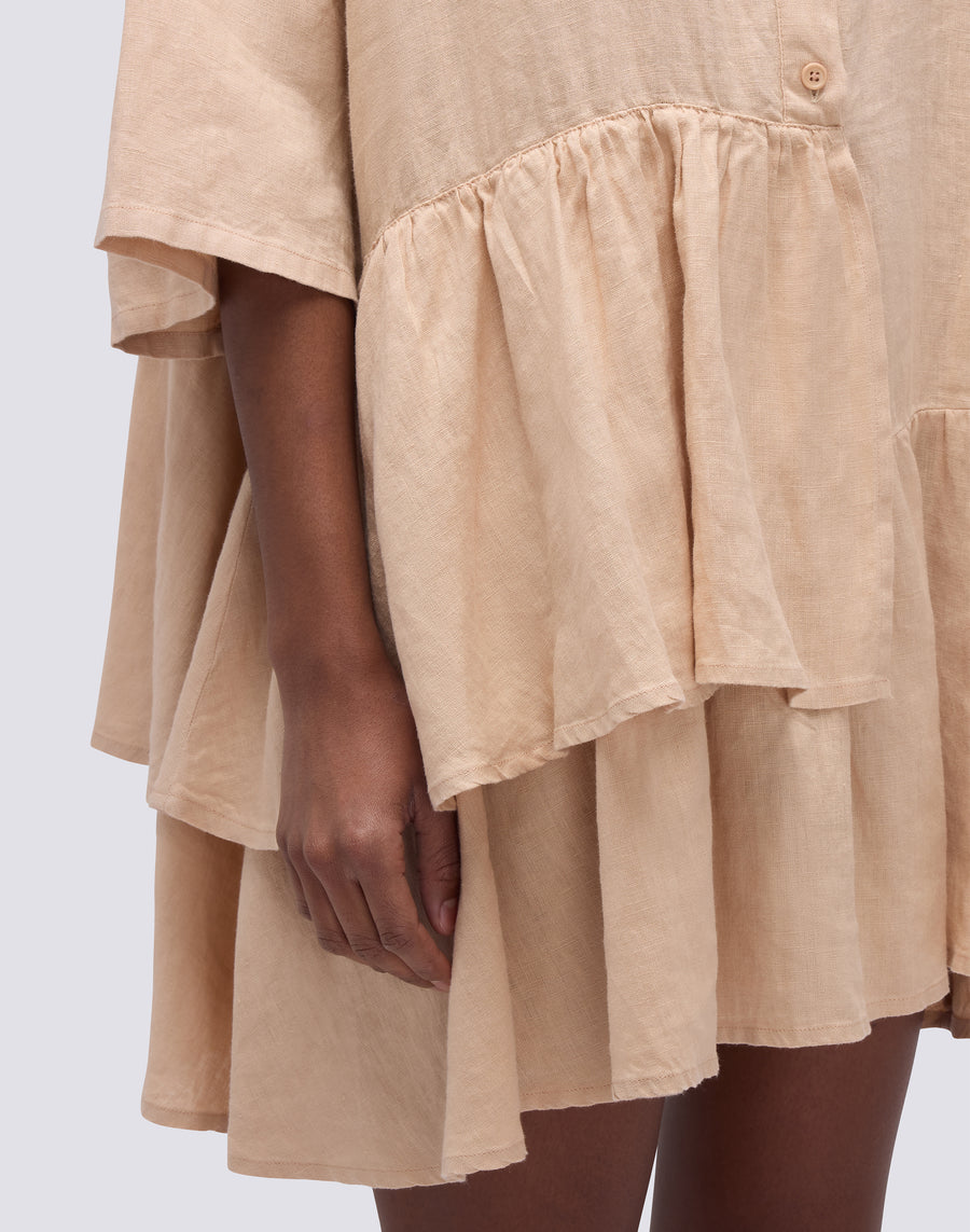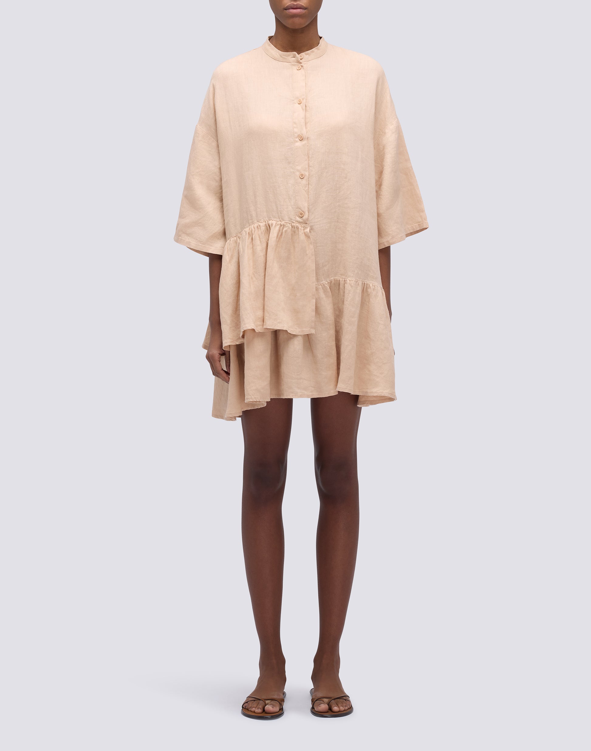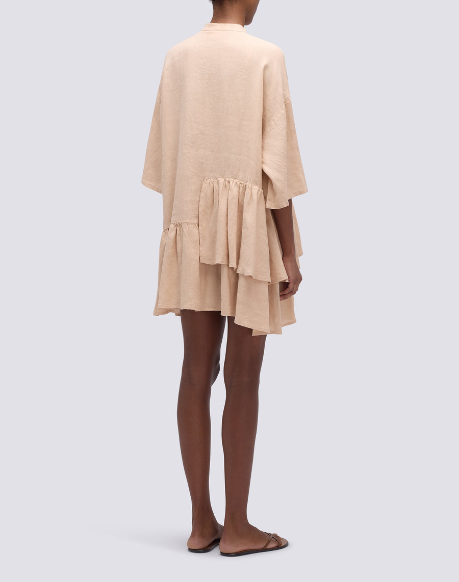 Light and flowing fabric, just like the waves. Wear this short asymmetric dress in white linen and make your occasions special.