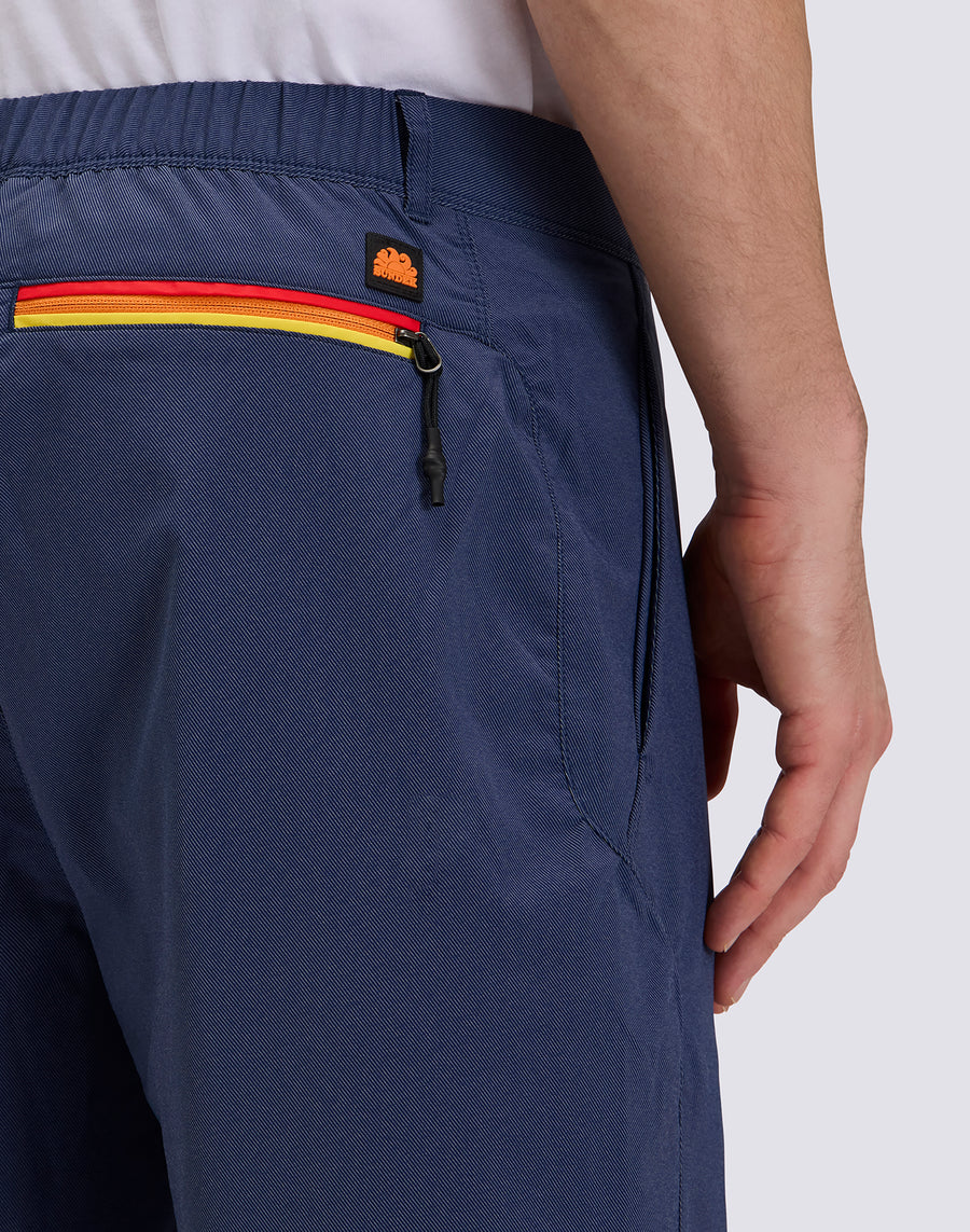 Men's long trousers in quick-drying polyester twill fabric. Semi-stretchy hybrids, they are a garment with a sporty character and a more technical connotation than the other models of Sundek men's trousers.