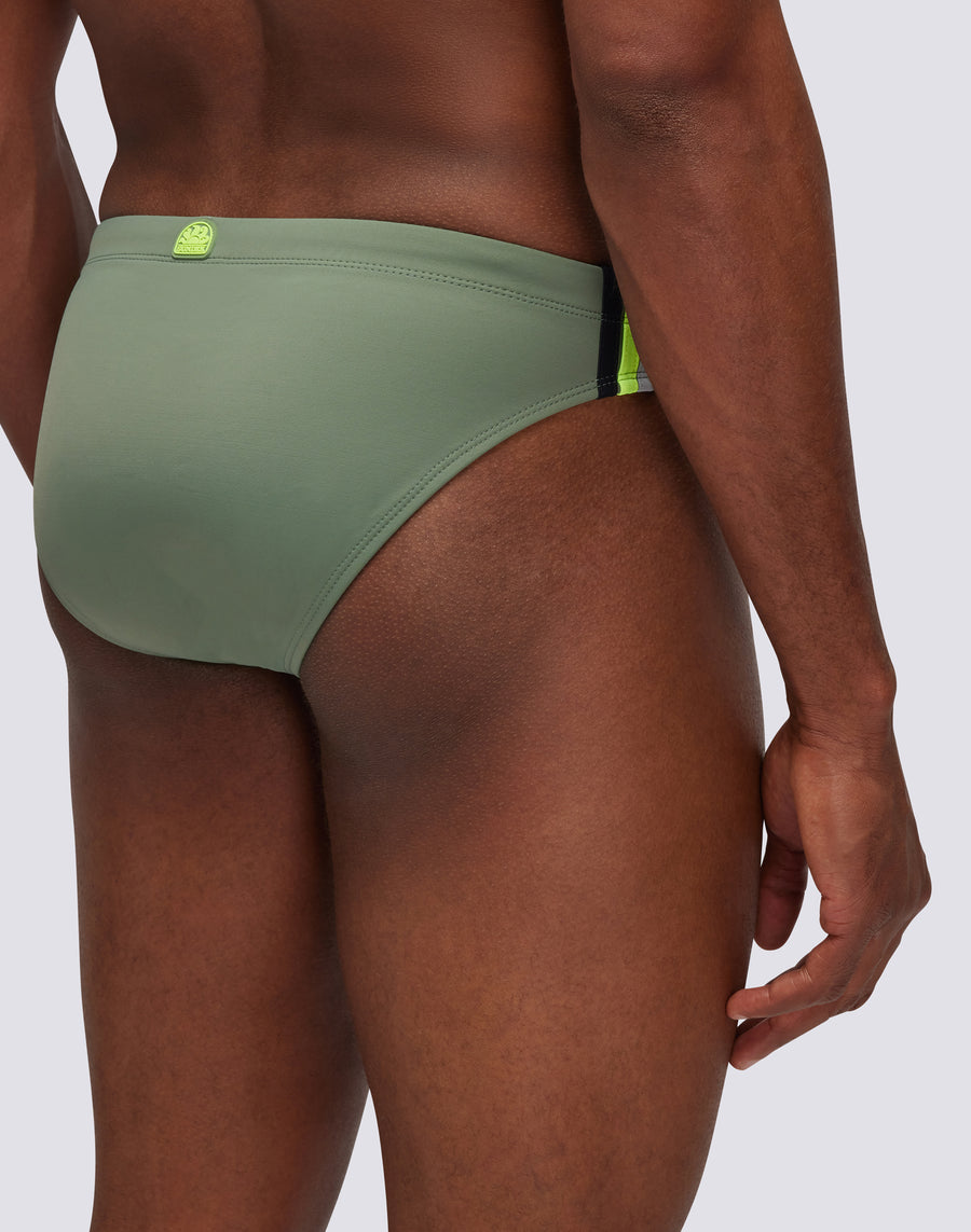 Men's plain briefs with an adjustable waistband Monochrome swim briefs with a drawstring and three contrasting stripes down the sides, combining bold style with functionality. Designed to dry quickly, they ensure comfort and durability in and out of the w