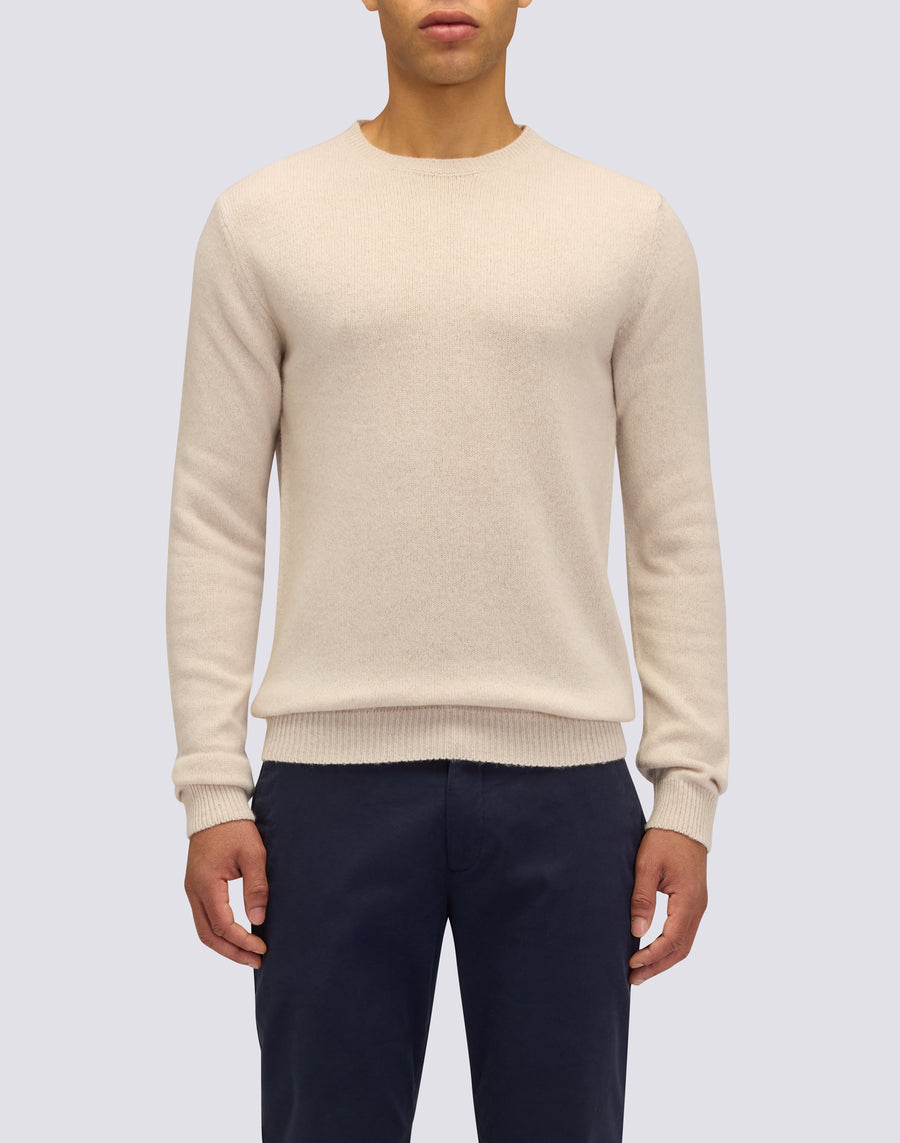 Men's crew neck sweater in a wool blend, ideal for creating both more informal and more elaborate outfits.