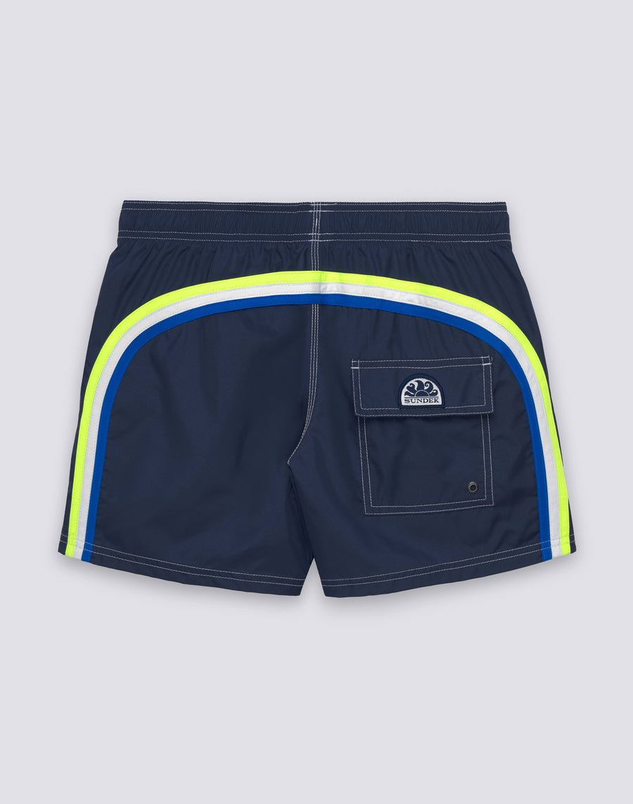 L'inconfondibile arcobaleno a tre colori Sundek sul retro