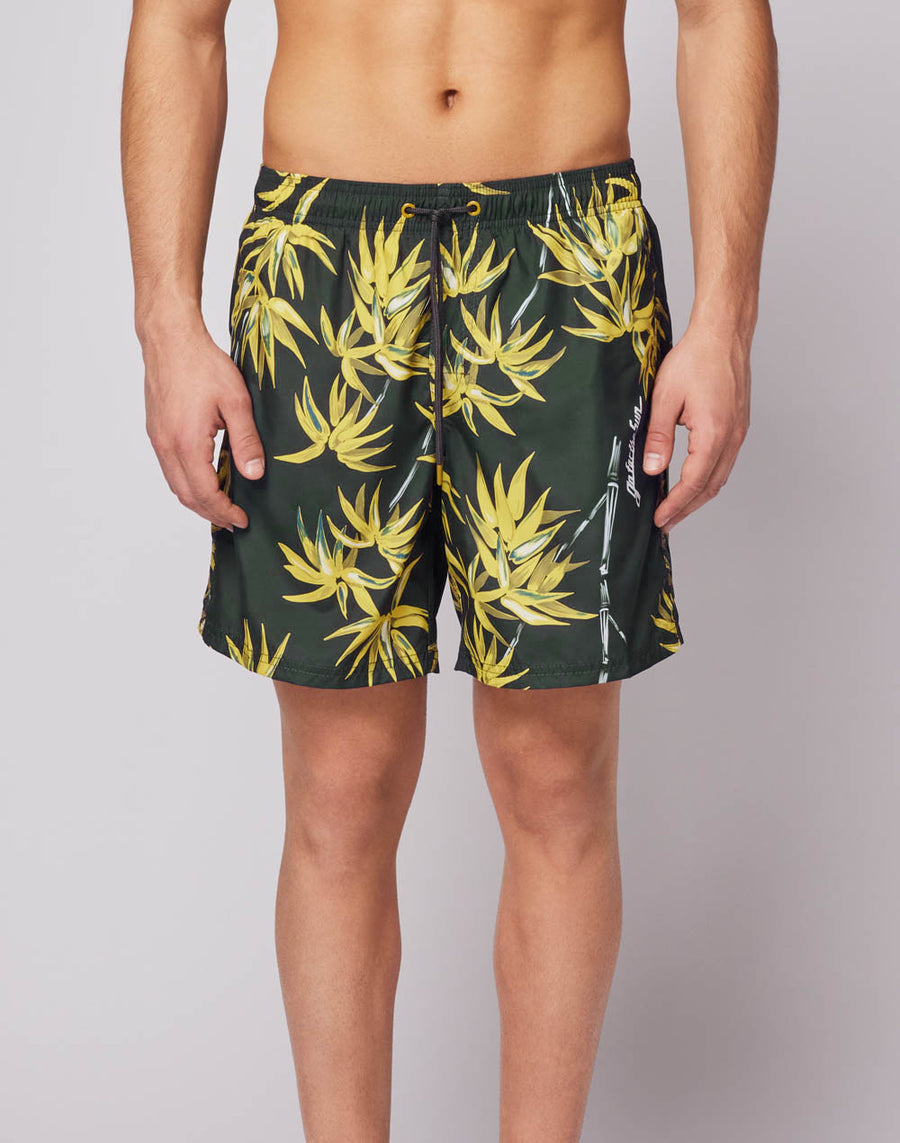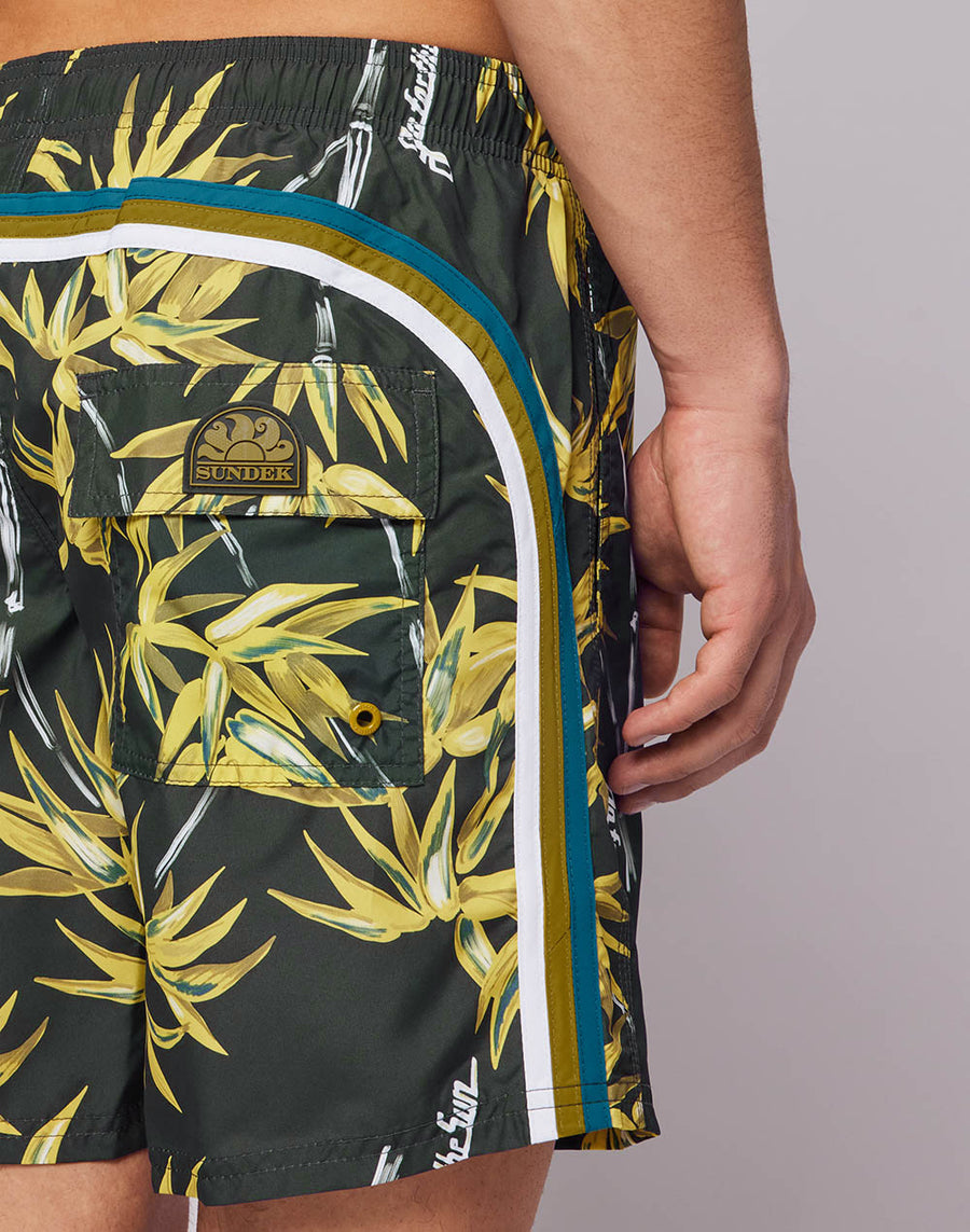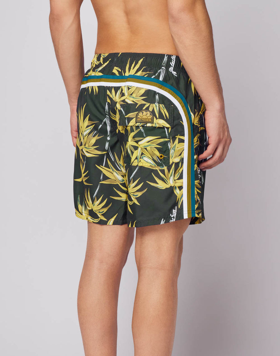 With green fabric, a flower-inspired design and the iconic Sundek rainbow on the back, this swimsuit is a beach must-have: thanks to its recycled REPREVE® fabric, made from plastic bottles, it is lightweight, durable and dries quickly.