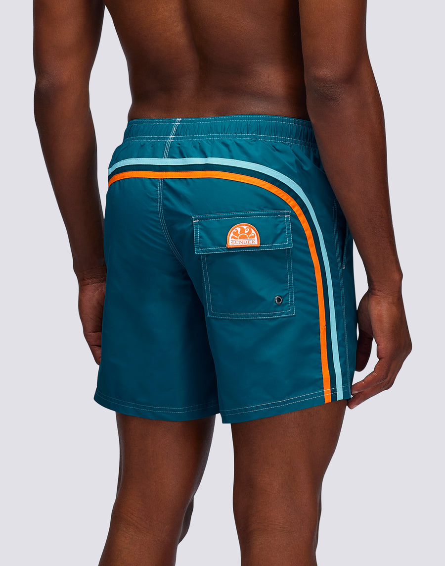 ICONIC TAFFETA STRETCH WAIST MID-LENGTH SWIM TRUNKS