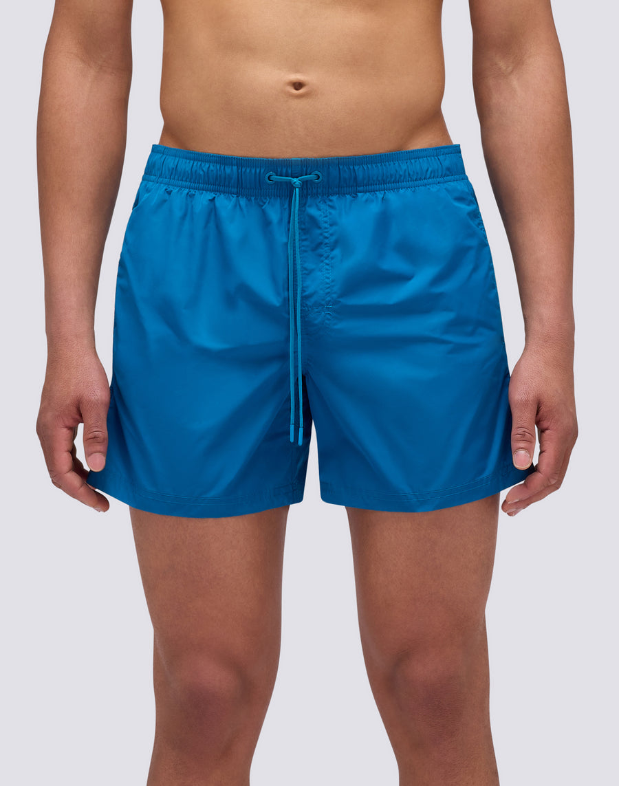 Short men's swimsuit in solid color with bright colors and the detail of the heat-sealed zip that closes the back pocket. Lightweight, resistant, dries very quickly and is made of memory polyester, a technical fabric that maintains its shape over time. It has our classic three-needle stitching that increases durability and our iconic rainbow on the back.