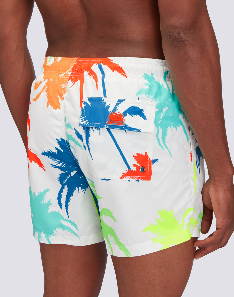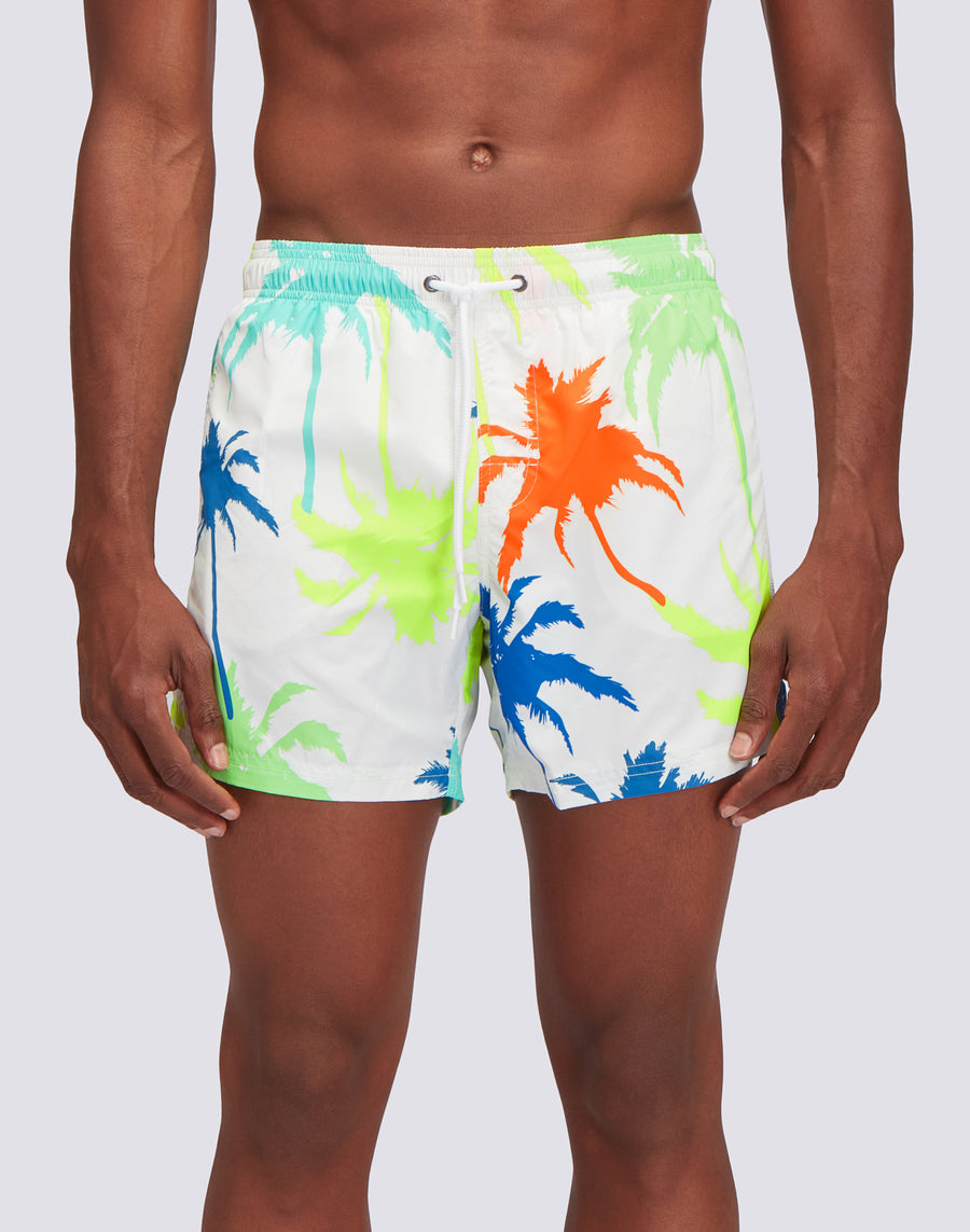 RECYCLED POLY SHORT SWIMSHORTS WITH ELASTIC WAIST MULTIPALM PRINT