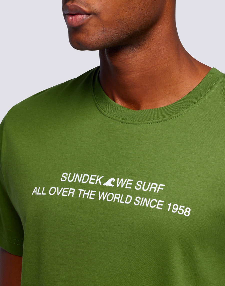 Sundek men's cotton T-shirt with screen print. The item is part of the Capsule Flag and you can choose to pair it with the respective swimshorts to create a total look.