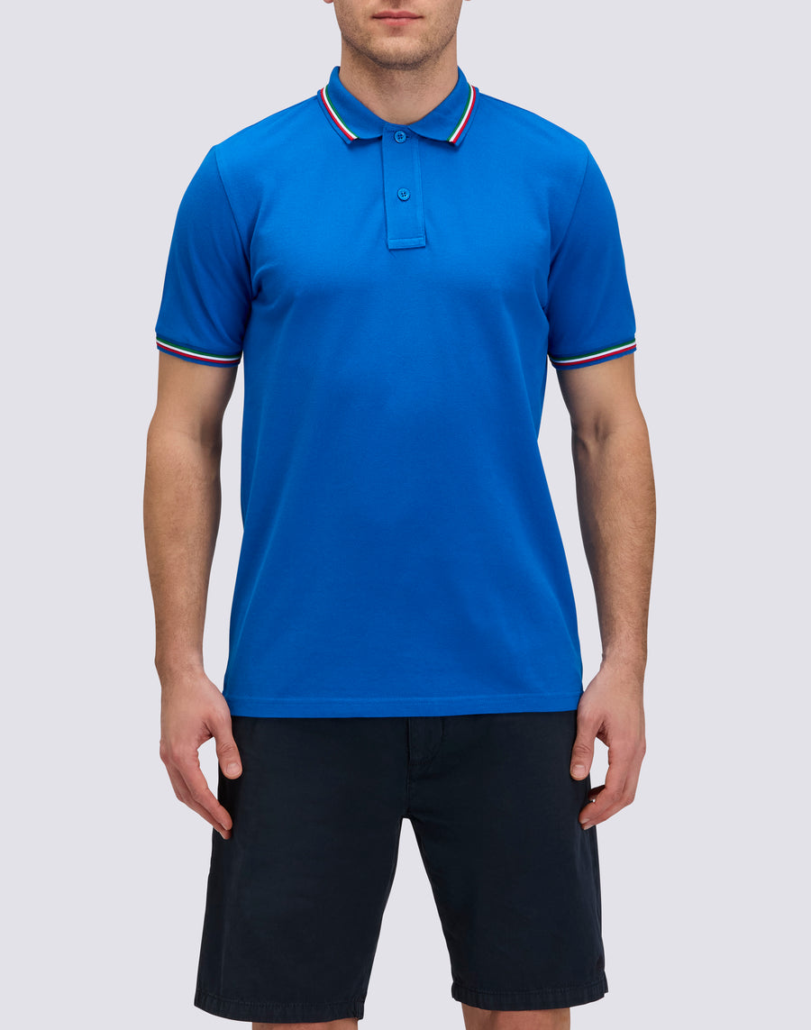 Iconic details and bright colors for this piqué cotton polo shirt perfect for giving character to the look. The men's polo shirt focuses entirely on details with collar and sleeve cuffs detailed with iconic tricolor bands. Perfect to combine with denim, casual trousers and Bermuda shorts, giving a touch of personality to outfits.