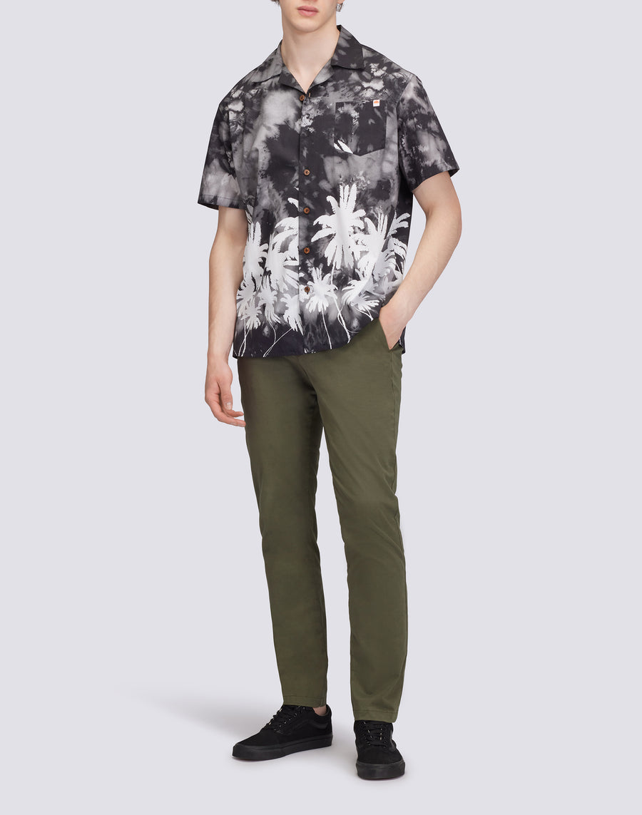 Short sleeved printed bowling shirt, made of cotton fabric.