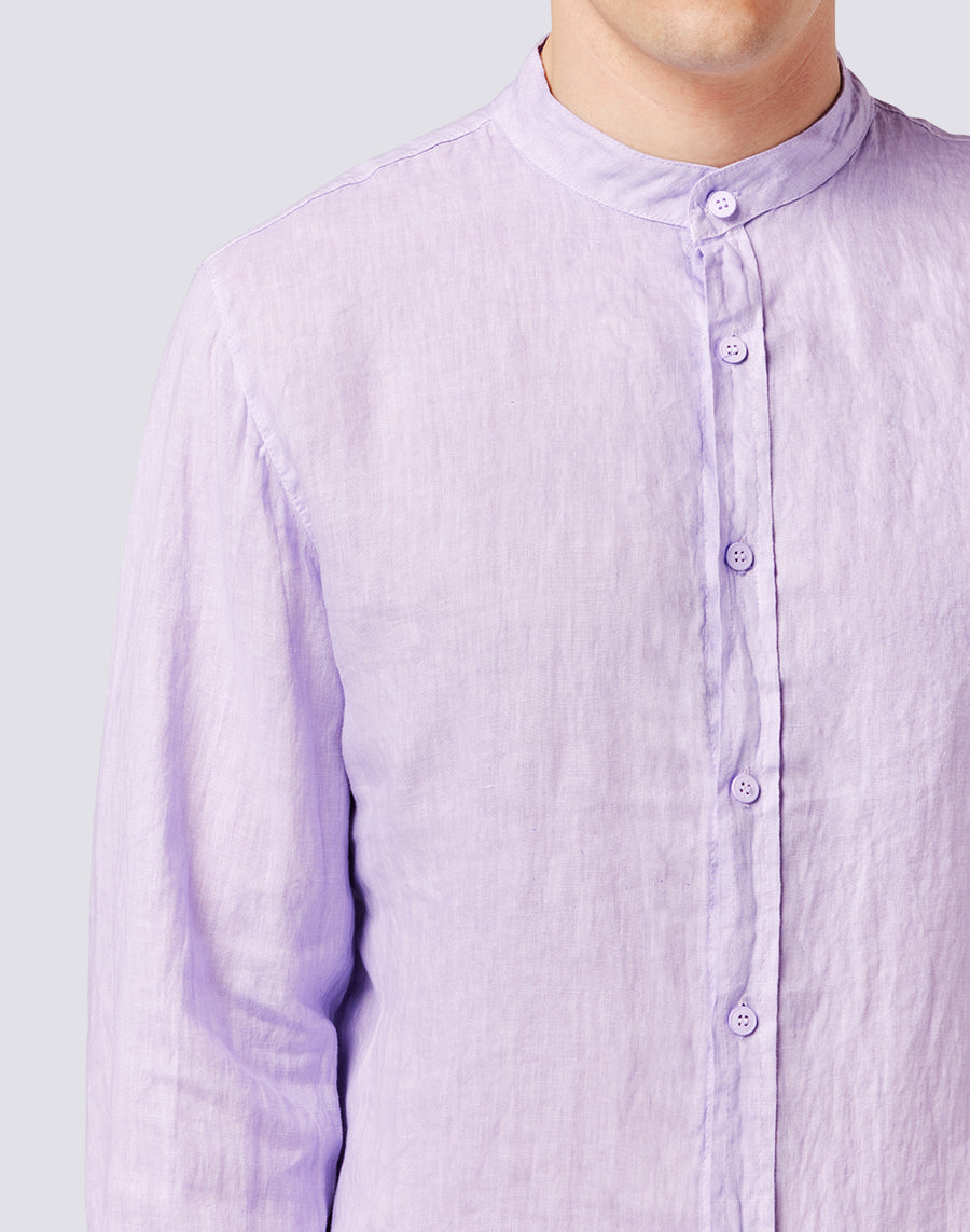 If you're looking for coolness and comfort, this men's linen shirt is ideal. Lightweight, with a mandarin collar and long sleeves, it's perfect for both more casual looks and on more formal pairings.