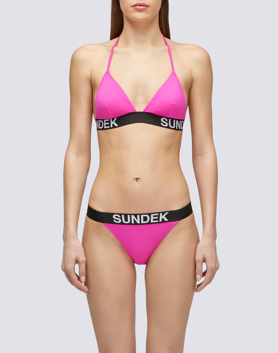Performance fabric that supports all movements and a sporty character defined by the jacquard elastic band with contrasting logo: combine these beach culottes with the coordinated top to create a strong look that will not go unnoticed.