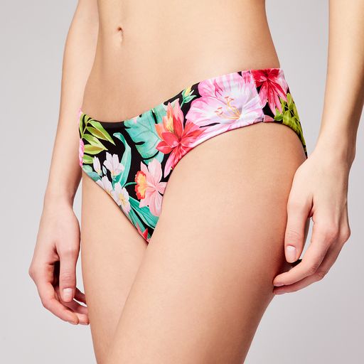 Complete the coordinated bra with these multicolor Hawaiian-inspired light and comfortable double fabric culotte briefs. Perfect for showing off a sophisticated and versatile women's bikini.