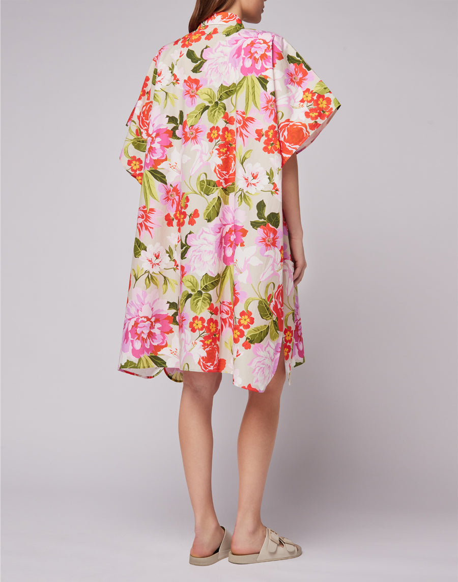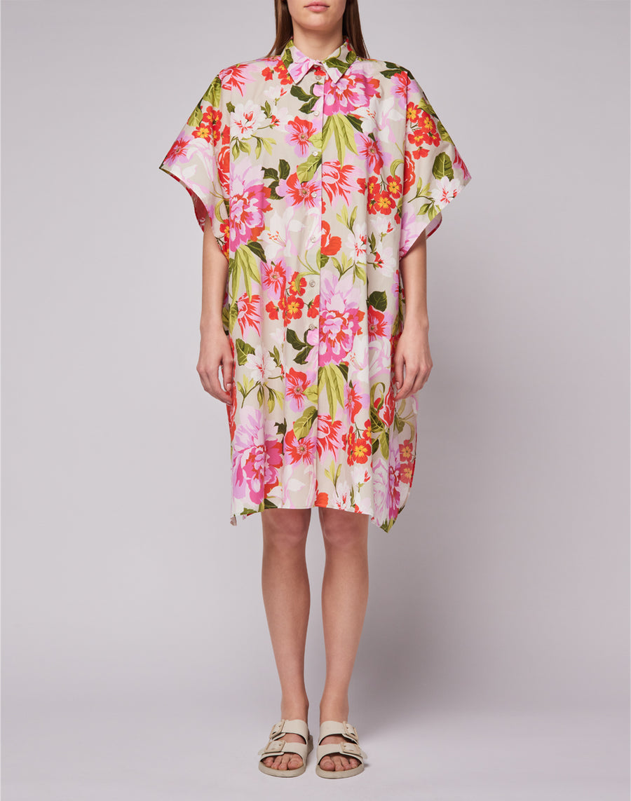 All the colors of Polynesia in this maxi cotton shirt with floral print. Perfect at the beach over a bathing suit or in moments of relaxation, to complete casual looks with a touch of liveliness.