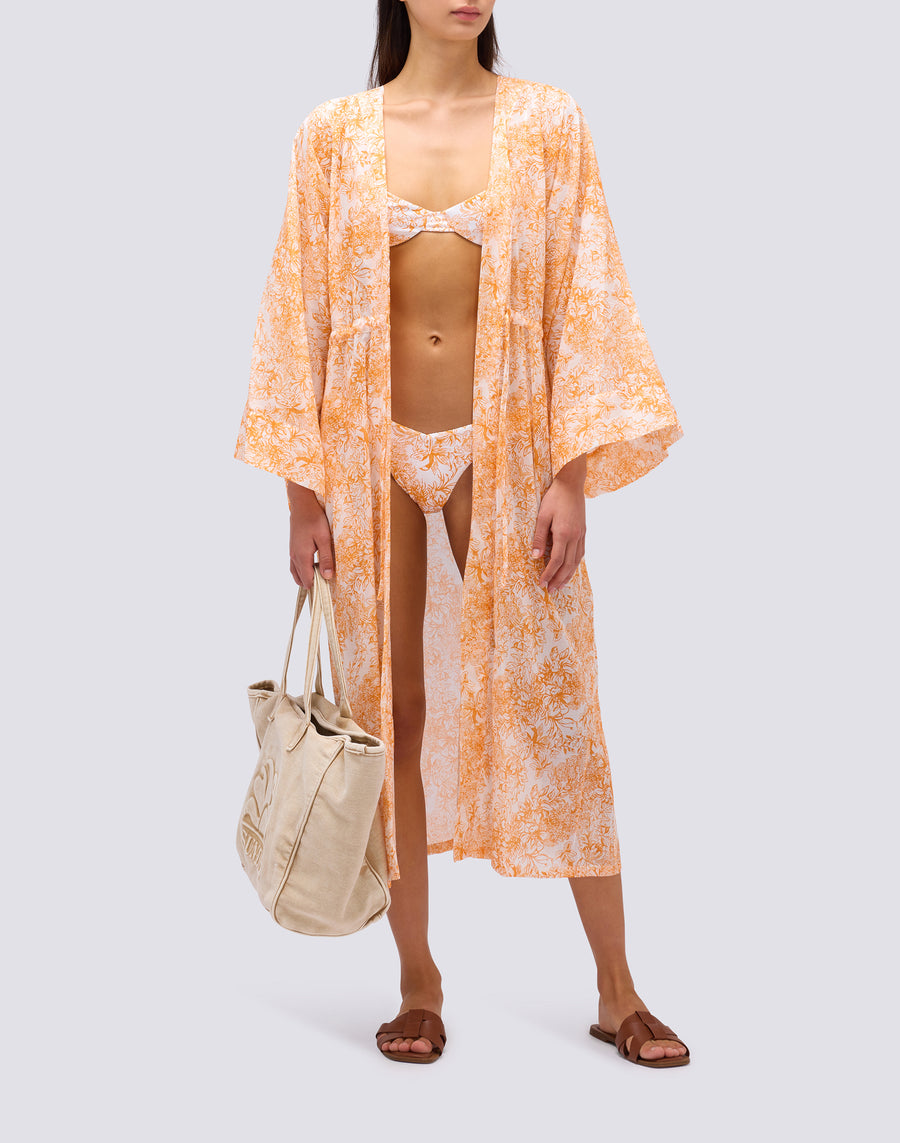 FLEUR DE JOIE PRINT LONG KIMONO DRESS